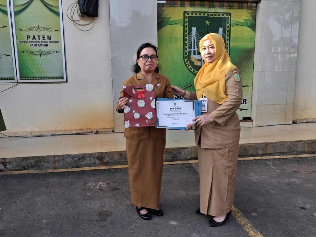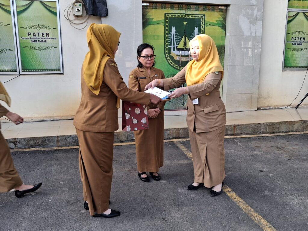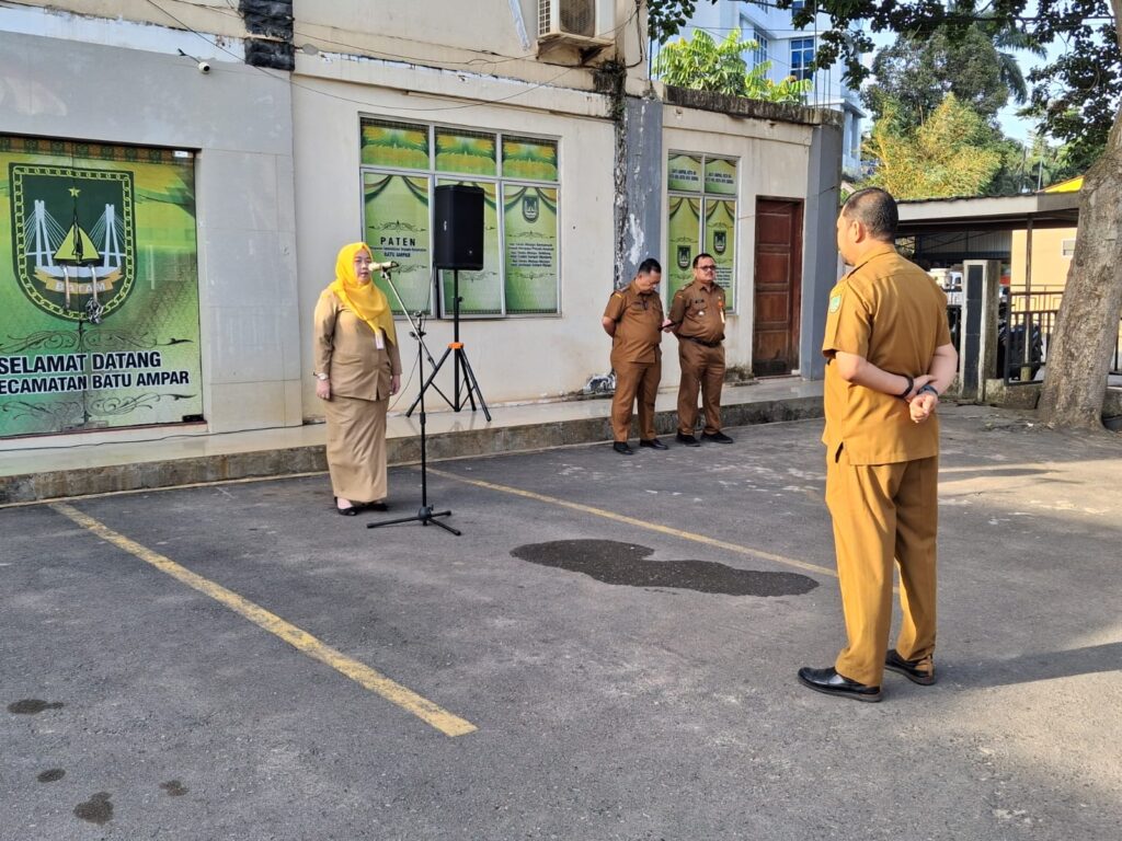 KECAMATAN BATU AMPAR – Apel rutin pegawai se-kecamatan Batu Ampar bulan Januari tahun 2026 dipimpin oleh Sekretaris Camat Batu Ampar ibu Tarini, S.IP., yang dilaksanakan pada hari Senin tanggal 26 Januari 2026 di halaman kantor camat Batu Ampar. dimana pada saat apel di umumkan pegawai teladan se-kecamatan Batu Ampar periode bulan Desember tahun 2025 yaitu ibu Dewi Nurhayati Manik, S.K.M., (Staf Kelurahan Kampung Seraya). sekaligus pelepasan purna tugas kepada ibu Dewi Nurhayati Manik, S.K.M. pada awal bulan Februari 2026.