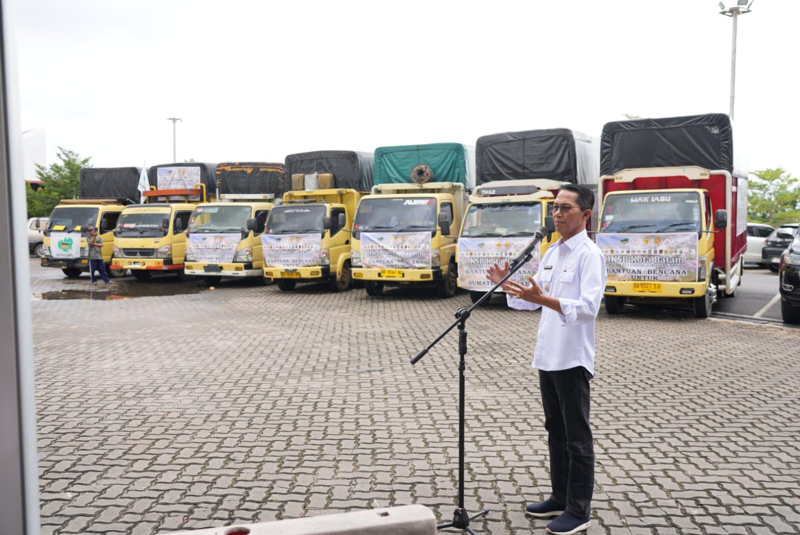 Diinisiasi IKSB, Amsakar Lepas Tujuh Truk Bantuan Sembako untuk Korban Bencana di Sumatera Barat