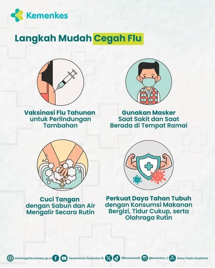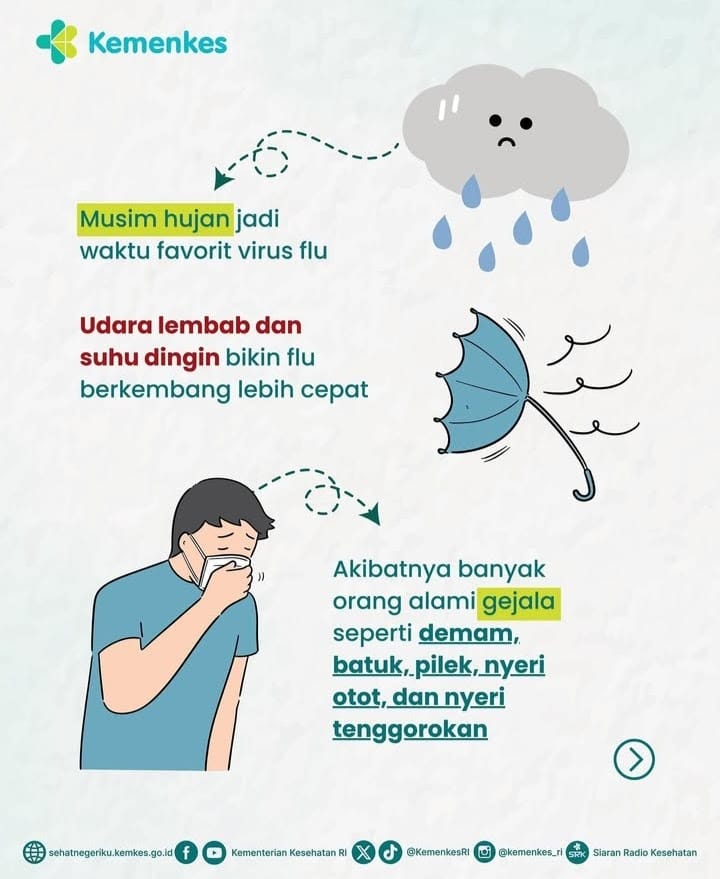 Langkah mudah mencegah Flu saat musim hujan 3 Maret 2026 Read More Sumber : @kemenkes_ri Post Views: 1 Share