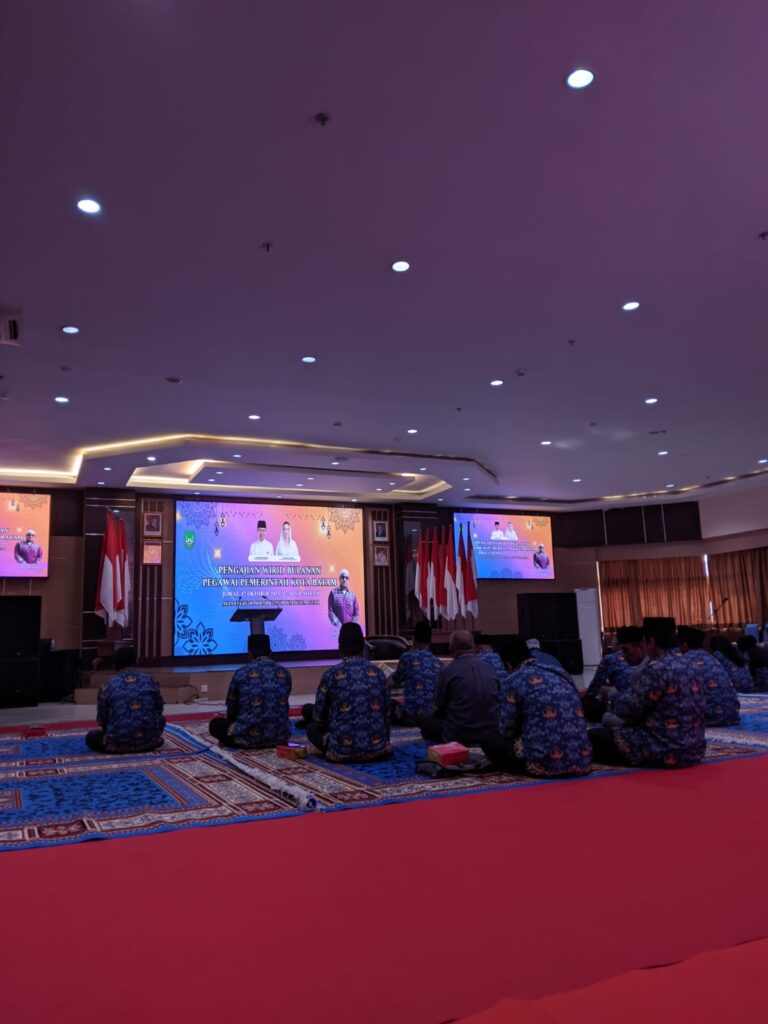 Batam — Staf Bagian Perekonomian Sekretariat Daerah Kota Batam menghadiri kegiatan Pengajian Wirid Bulanan Pemerintah Kota Batam Tahun 2025 yang diselenggarakan di lingkungan Pemerintah Kota Batam sebagai bagian dari upaya penguatan nilai spiritual dan kebersamaan antar ASN.