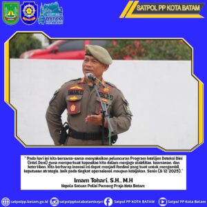 Batam – Satuan Polisi Pamong Praja (Satpol PP) Kota Batam resmi meluncurkan Intelijen Deteksi Dini (INTELDENI) pada Senin, 8 Desember 2025. Program ini merupakan Rancangan Aksi Perubahan PKA Angkatan IV yang digagas oleh Kabid Trantibum Satpol PP Kota Batam, Anto S., E., M.M.