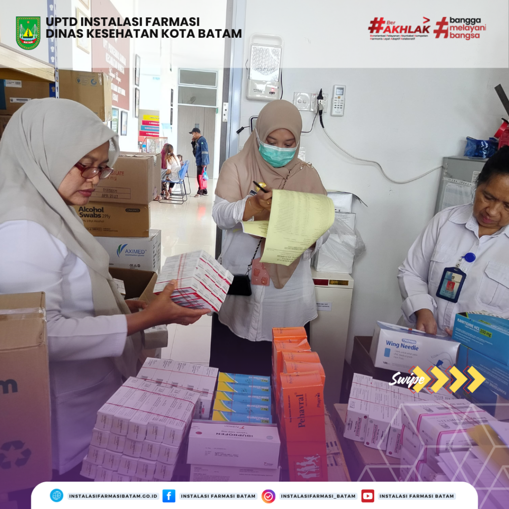 UPTD Instalasi Farmasi Dinas Kesehatan Kota Batam melakukan Pendistribusian Obat, Bahan Medis Habis Pakai (BMHP) dan Vaksin rutin ke Puskesmas Sambau pada Rabu, 12 November 2025